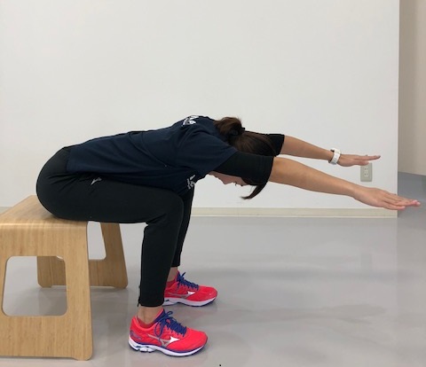 写真のように腰が下がったり、逆にお尻が上がりすぎてくの字にならないようにする