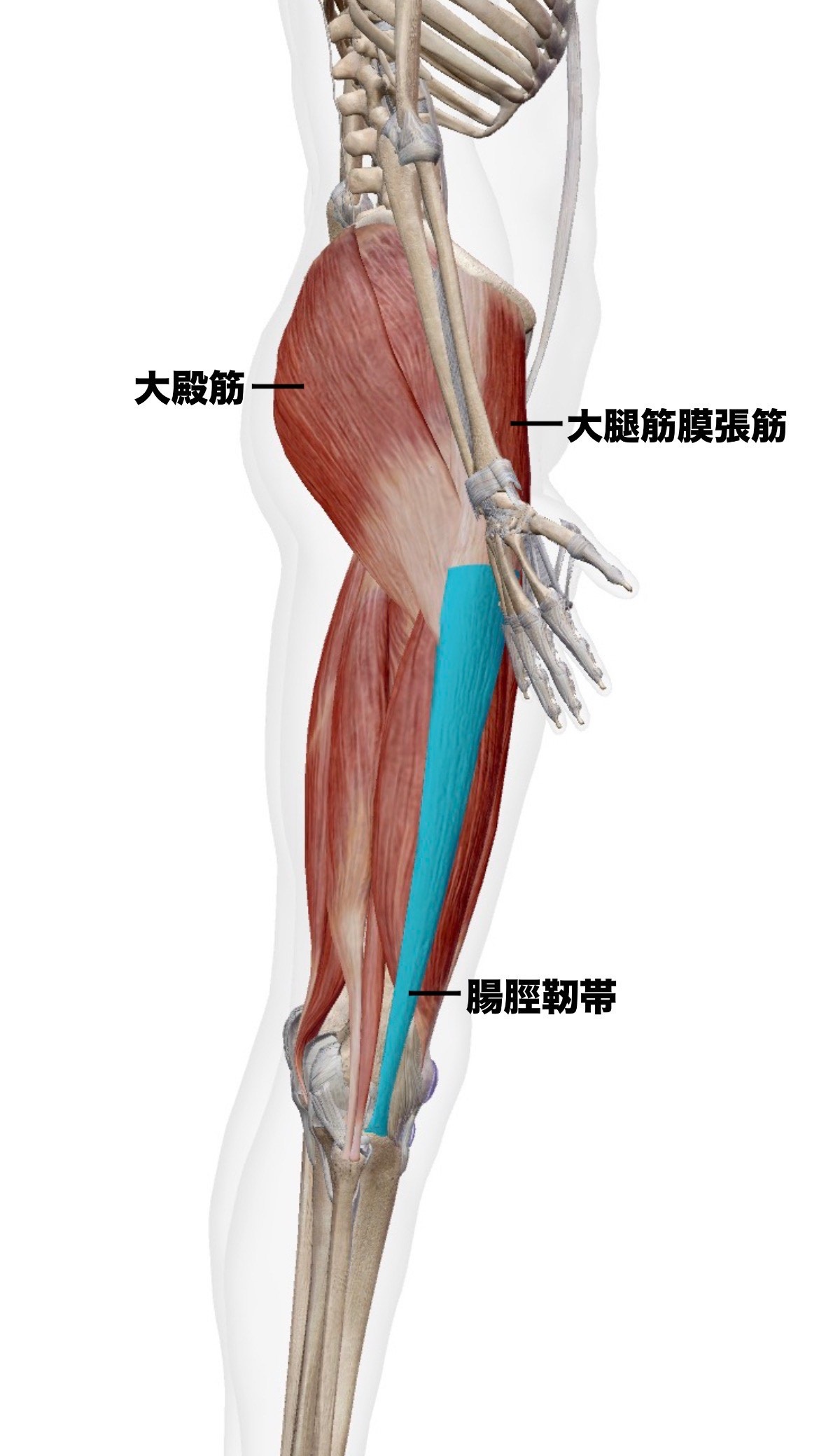 腸脛靭帯とは大殿筋・大腿筋膜張筋から続き、脛骨外側顆(