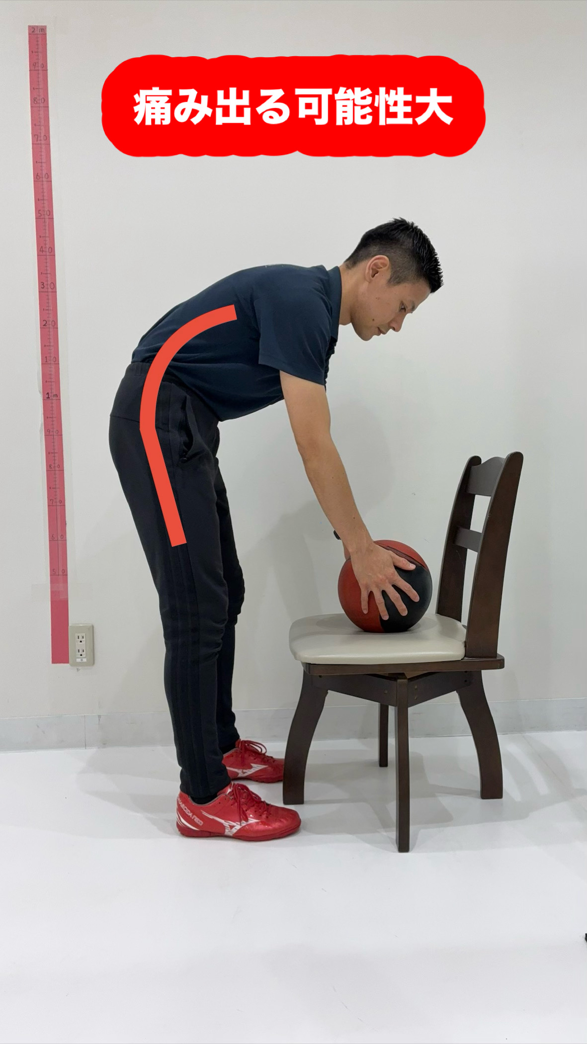 この上半身を前へ傾ける動きを腰から動かしてしまうと、腰痛を起こしやすくなってしまいます。