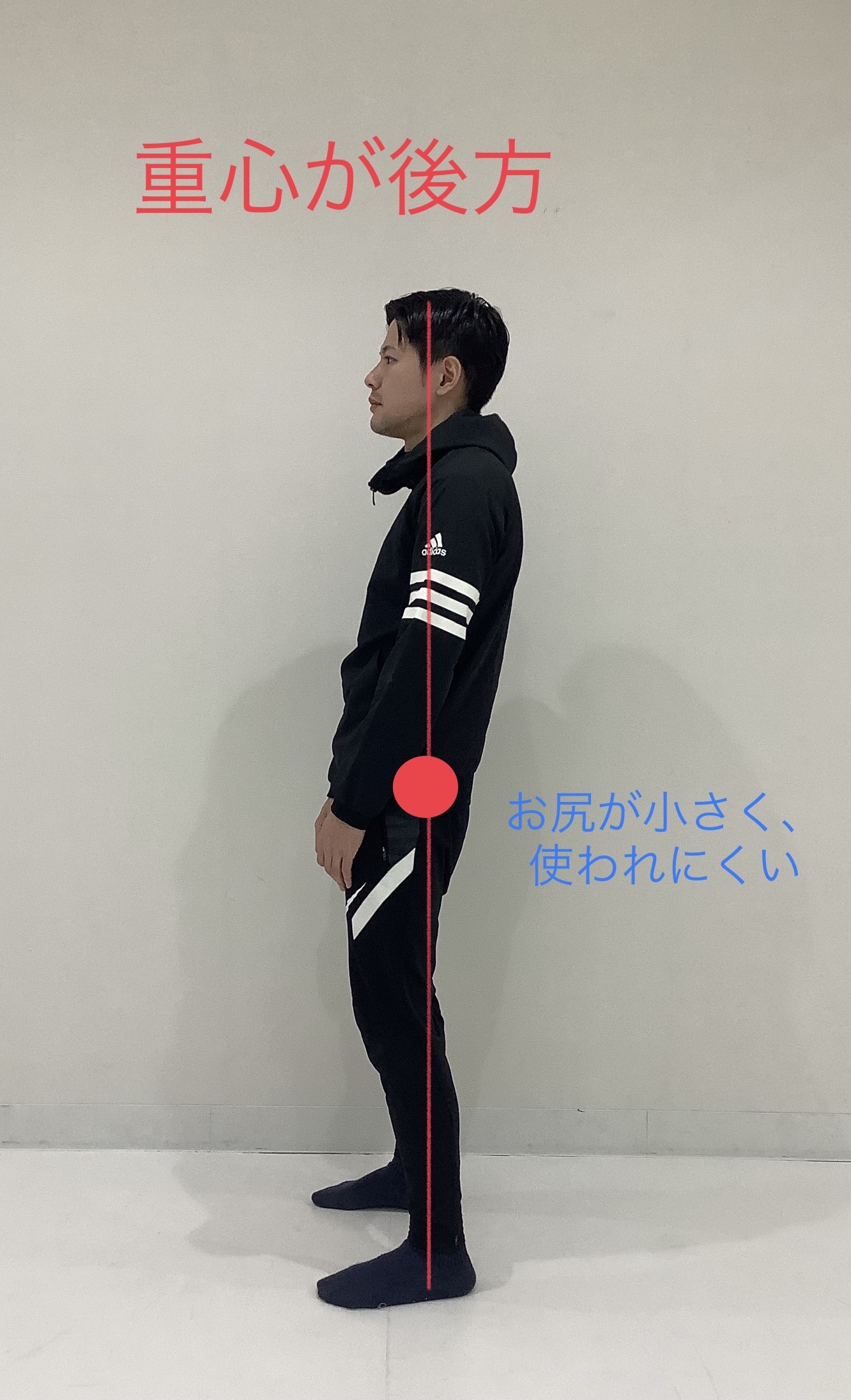 この姿勢だと、お尻の筋肉はうまく使えないという事です。