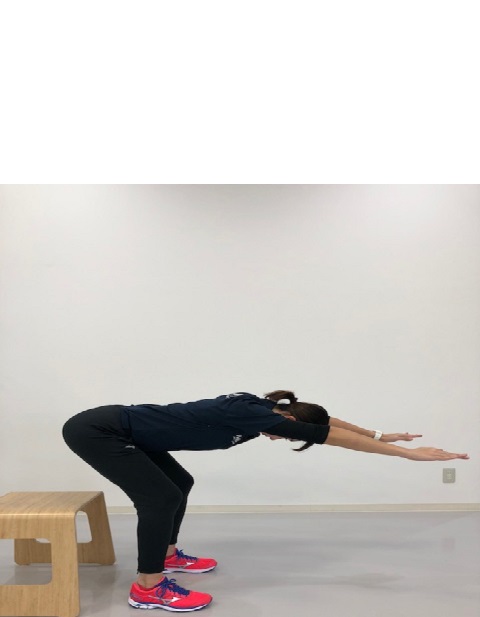 ③肩甲骨を寄せると体や肩が前に出る