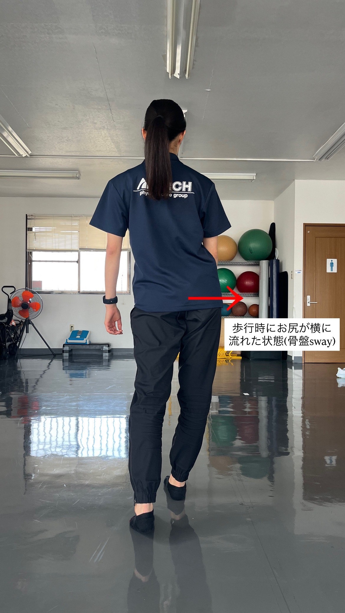 歩行時にお尻の筋肉の機能が低下していると片足で支えきれずに外