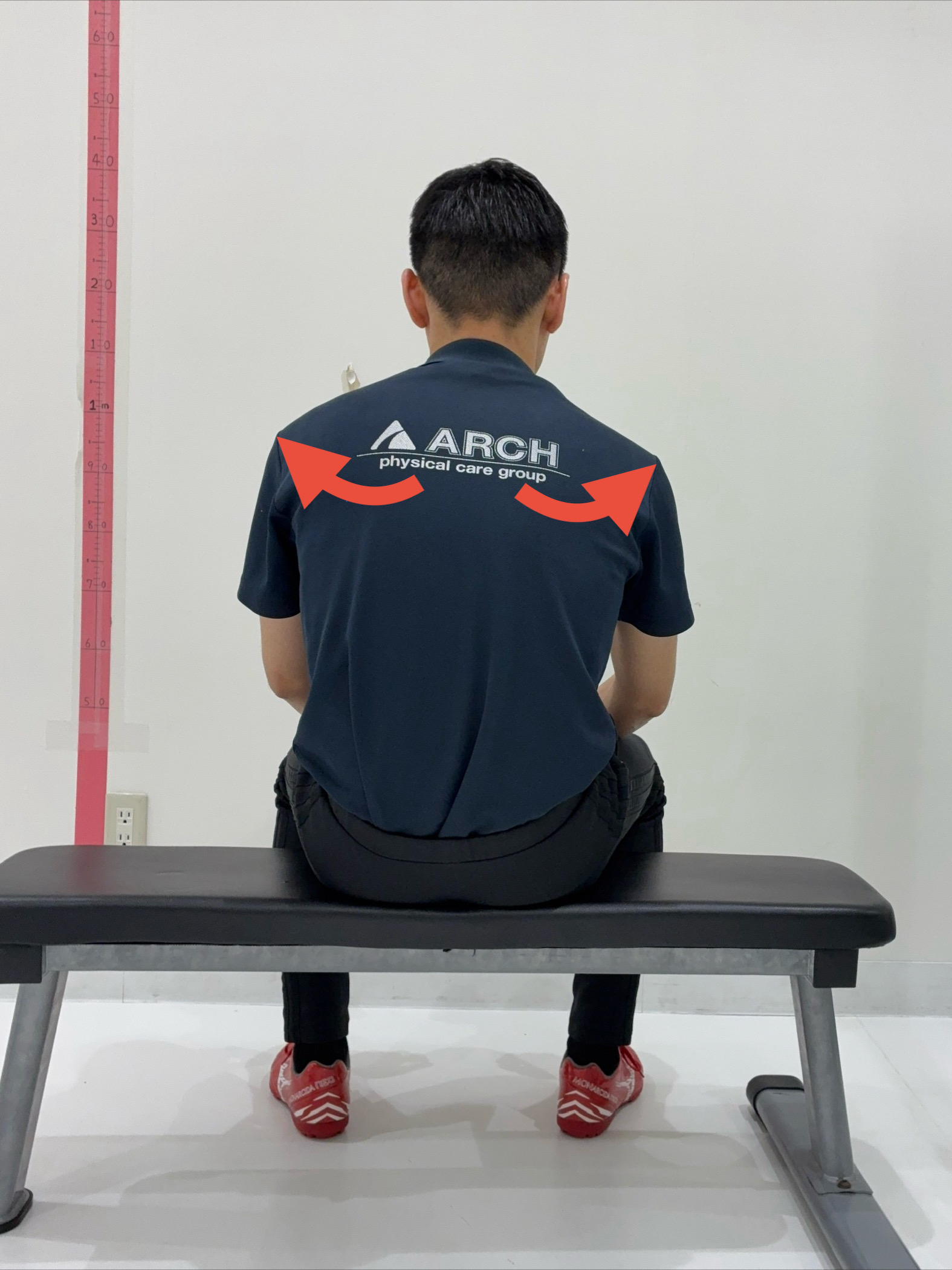 生理的湾曲の良い姿勢をつくるには肩甲骨を内側へ寄せやすい可動域が必要です。