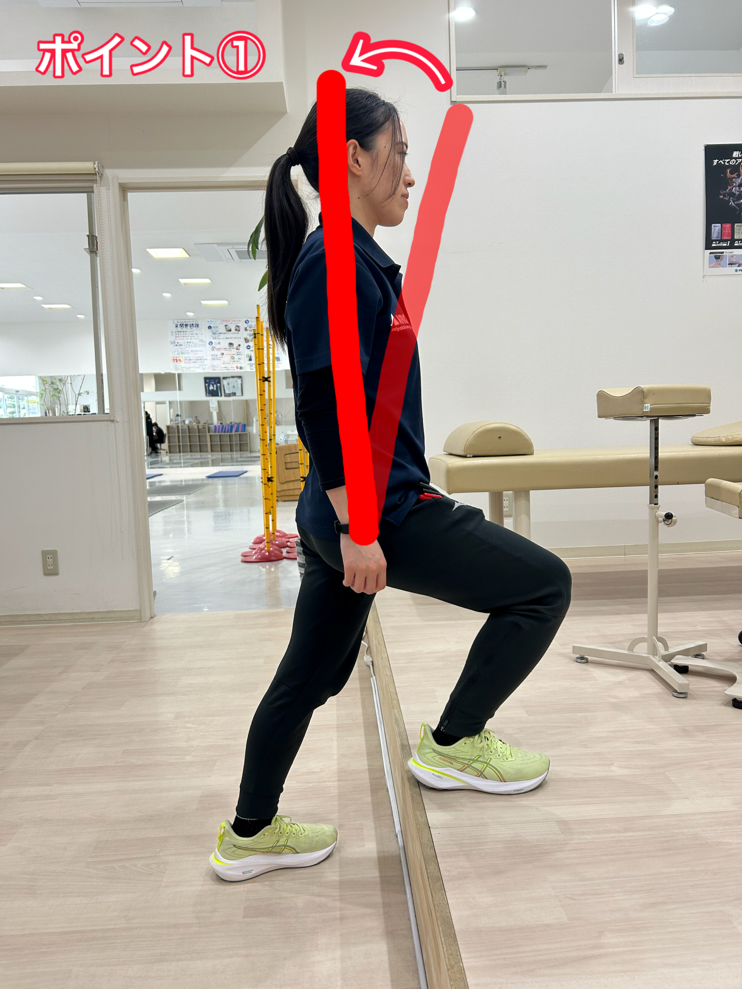 目線が上がると重心が後ろに残り、それをカバーしようとして膝の前側に過度な負担がかかります。