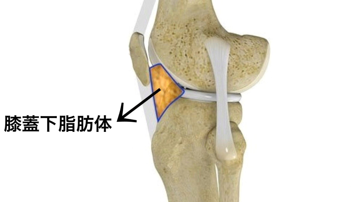 その正体は、膝のお皿の下にある「脂肪体(しつがいかしぼうたい)」という組織の痛みです。